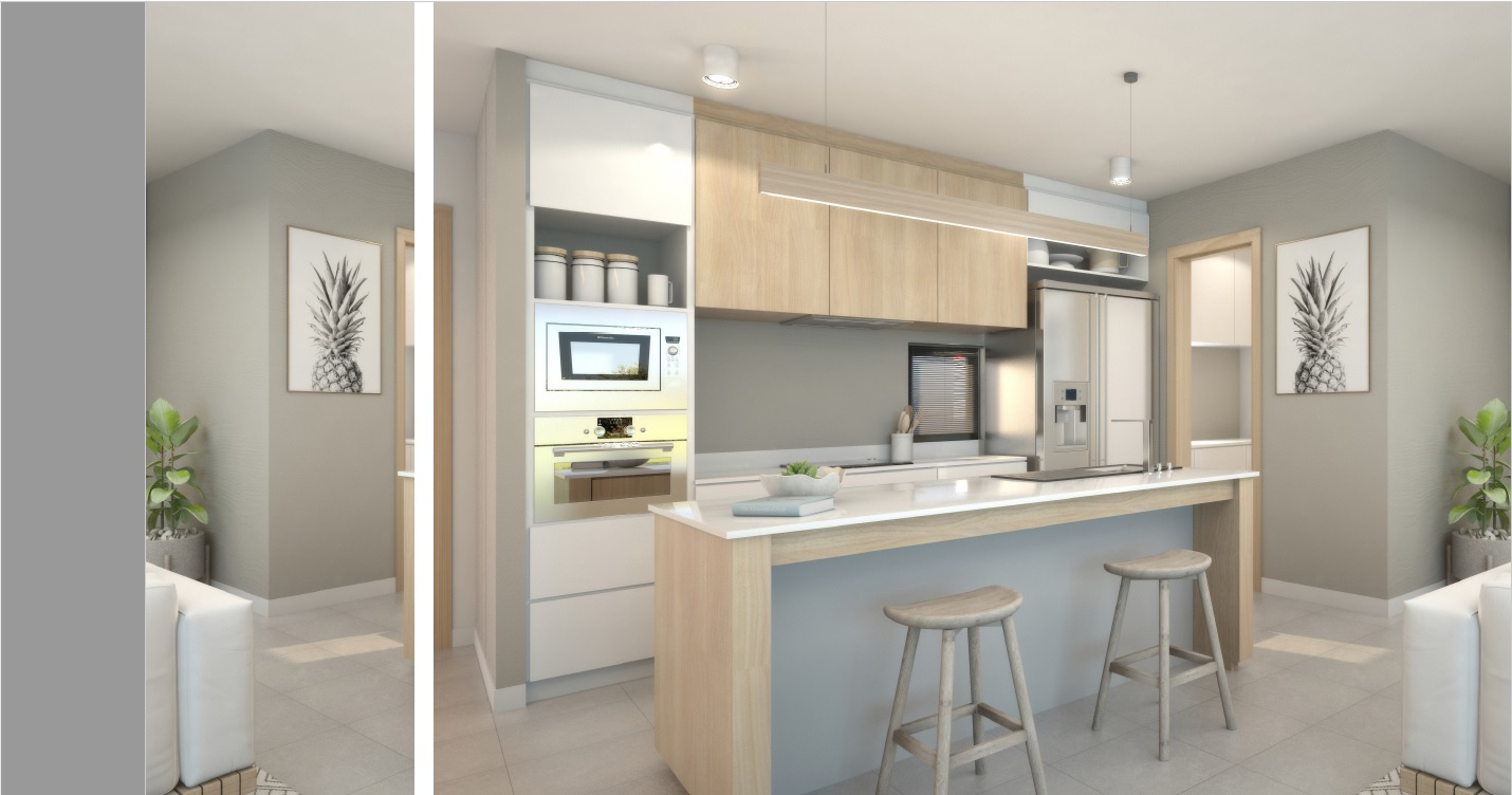 Chaque villa a une surface totale d’environ 260,60 m², dont 161,70 m² habitables, et offre des volumes généreux comprenant une cuisine contemporaine, un vaste séjour lumineux et trois chambres.